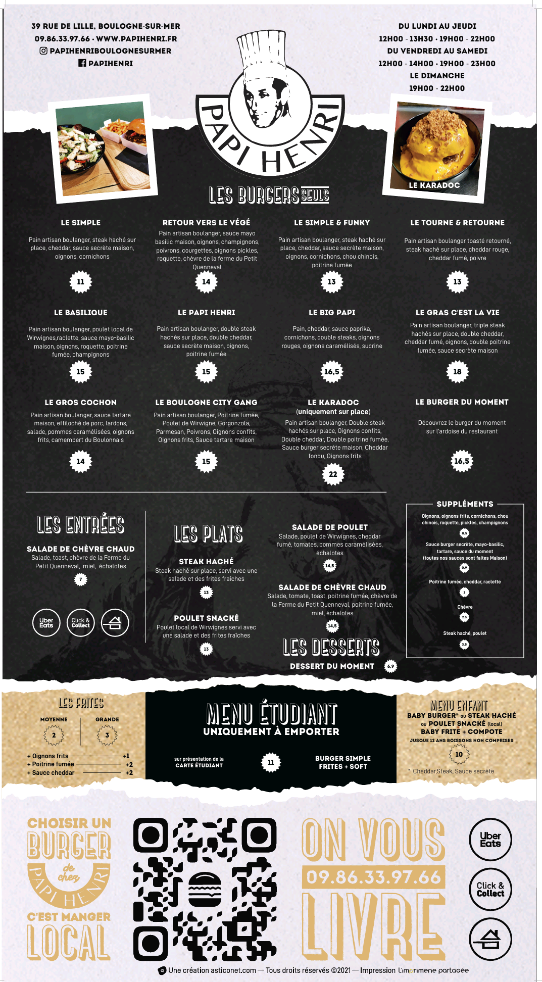 CALL +33986339766Bienvenue chez Papi Henri ! Nous sommes un restaurant spécialisé dans la street food, avec des plats faits maison.